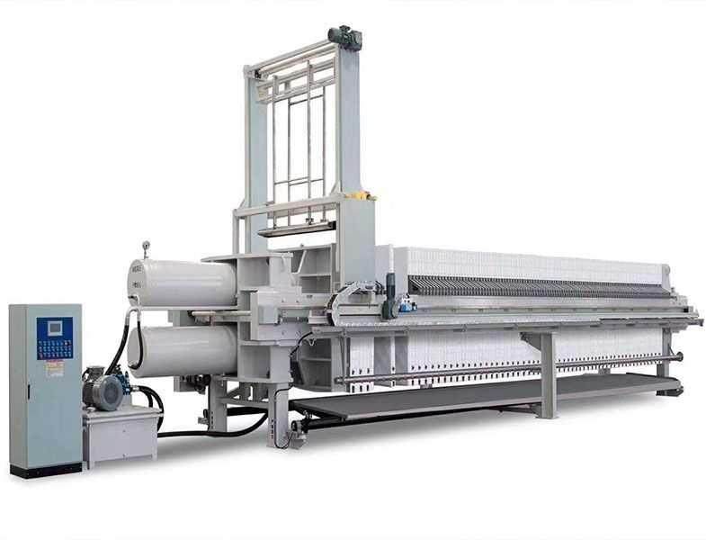 首先是正壓強壓脫水,也稱進漿脫水,即一定數量的濾板在強機械力的作用下被緊密排成一列,濾板面和濾板面之間形成濾室,過濾物料在強大的正壓下被送入濾室,進入濾室的過濾物料其固體部分被過濾介質(如濾布)截留形成濾餅,液體部分透過過濾介質而排出濾室,從而達到固液分離的目的,隨著正壓壓強的變大,固液分離則更完全,但從能源和成本方面考慮,過高的正壓壓強不劃算。
